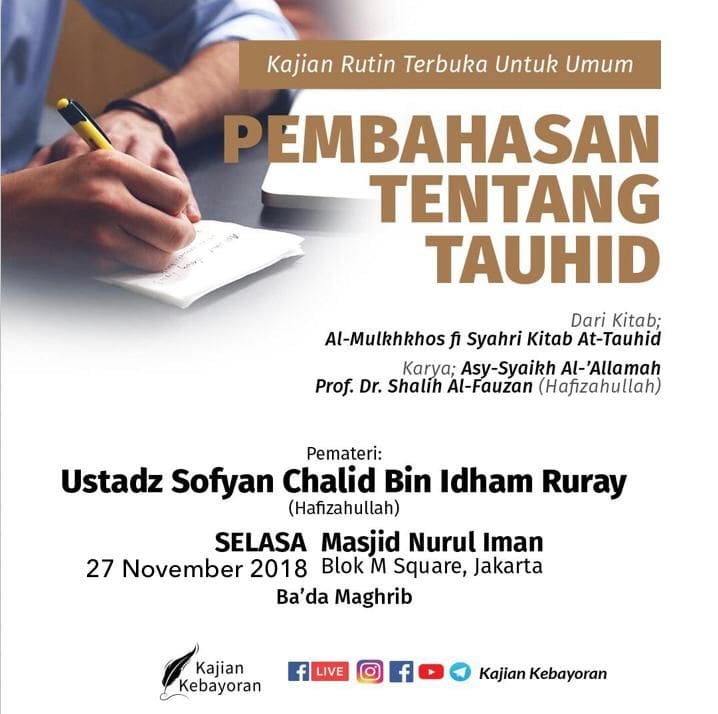 BLOK M JAKARTA SELATAN…Aplikasi Ilmu IslamNovember 26, 2018All, Telegram, Telegram TaawunDakwah BLOK M JAKARTA SELATAN View Source Previous Post TIGA RUMUS MUDAH MENGENAL BID'AH Ustadz Sofyan Chalid bin Idham Ruray, Lc hafiz... Next Post SERI MELURUSKAN SYUBHAT BID'AH HASANAH (14) KAIDAH MARTABAKIYAH: MARTABAK HALAL...