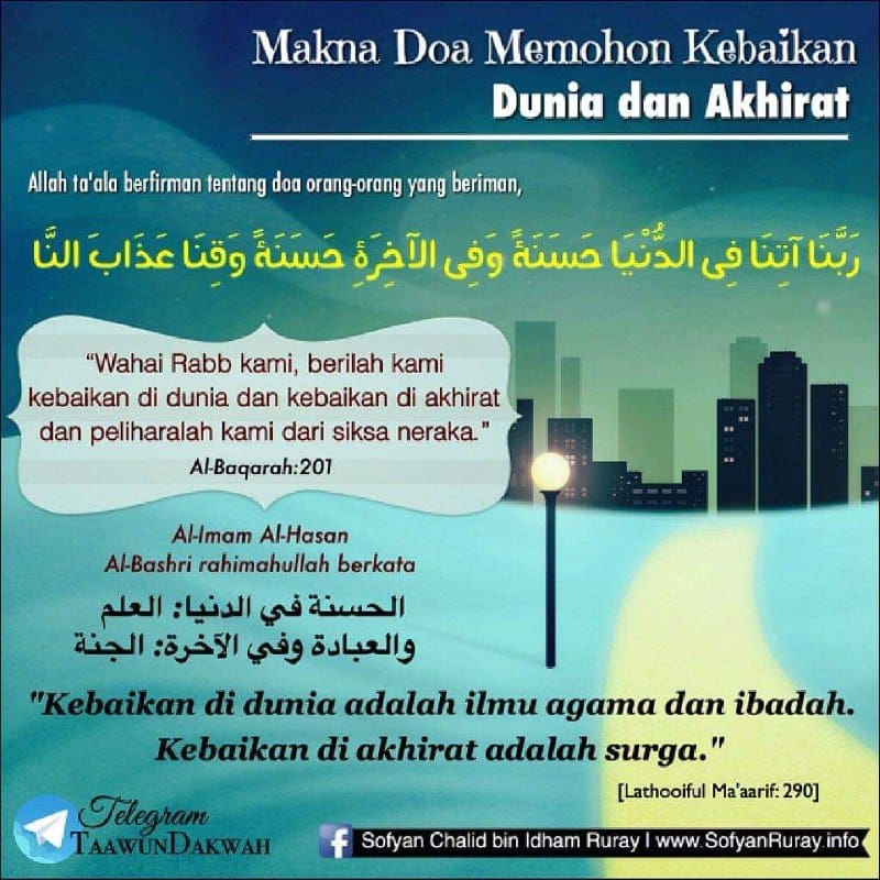 Makna Doa Memohon Kebaikan Dunia dan Akhirathttps://twitter.com/SofyanRuray/stat…Aplikasi Ilmu IslamJuly 5, 2020All, Telegram, Telegram TaawunDakwah Makna Doa Memohon Kebaikan Dunia dan Akhirat https://twitter.com/SofyanRuray/status/1279216269007282176 View Source Previous Post TIGA PINTU KE NERAKAبِسْمِ اللَّهِ الرَّحْمَنِ الرَّحِيمِAl-Imam Ibnul Qoyyim r... Next Post MAKNA DOA MEMOHON KEBAIKAN DUNIA & AKHIRATبِسْمِ اللَّهِ الرَّحْمَنِ الرَّح...