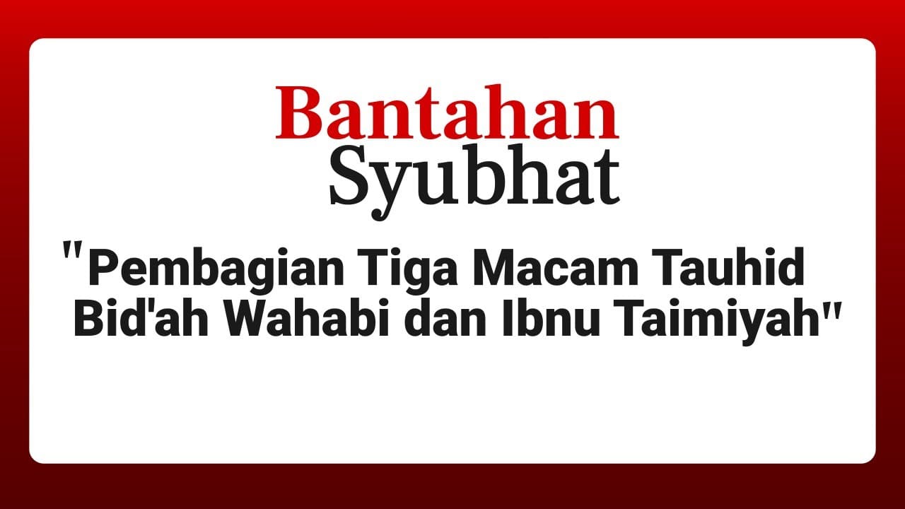 Bantahan Syubhat “Pembagian Tiga Macam Tauhid Bid’ah Wahabi dan Ibnu Taimiyah”ht…Aplikasi Ilmu IslamJuly 30, 2020All, Telegram, Telegram TaawunDakwah Bantahan Syubhat “Pembagian Tiga Macam Tauhid Bid’ah Wahabi dan Ibnu Taimiyah” https://youtu.be/YdqfSbga428 View Source Previous Post APABILA BERTEMU HARI RAYA DAN HARI JUM'AT بِسْمِ اللَّهِ الرَّحْمَنِ الرَّحِيمِ... Next Post LEBIH SERIUS BERDZIKIR DAN BERDOA DI HARI ARAFAH TERUTAMA DI WAKTU SOREبِسْمِ ا...