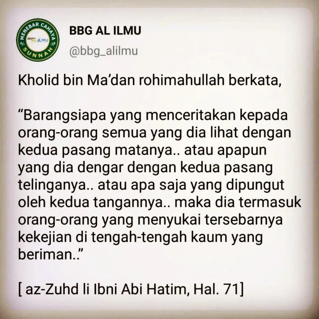 “Sesungguhnya orang-orang yang suka sekali supaya tersebar berita-berita keji dalam kalangan orang-orang yang beriman, mereka akan mendapat azab yang pedih di dunia dan di akhirat.