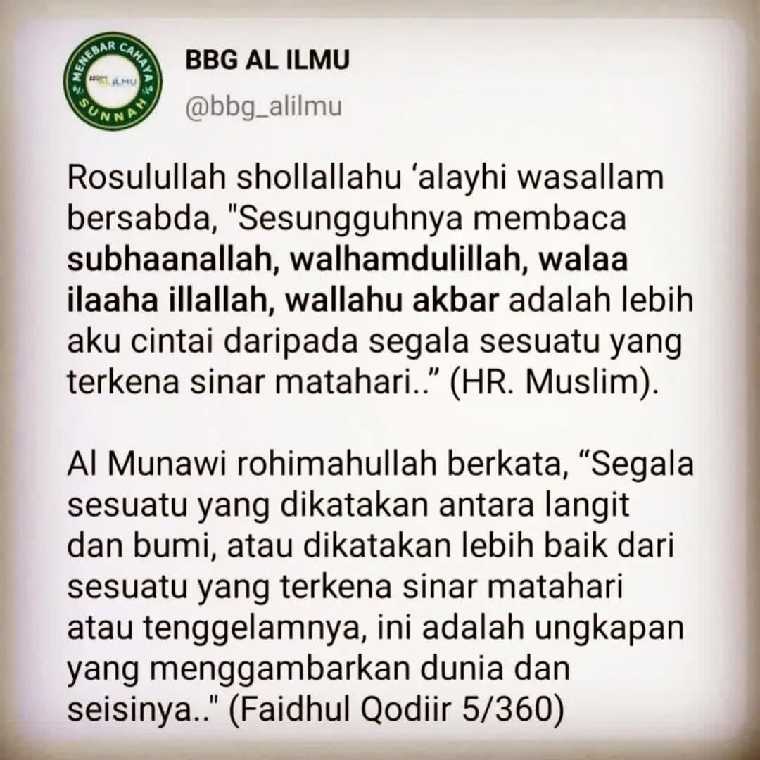 semoga Allah Ta’ala memberikan kemudahan kepada kita untuk memperbanyak dzikir ini di setiap saat .. di setiap hari ..