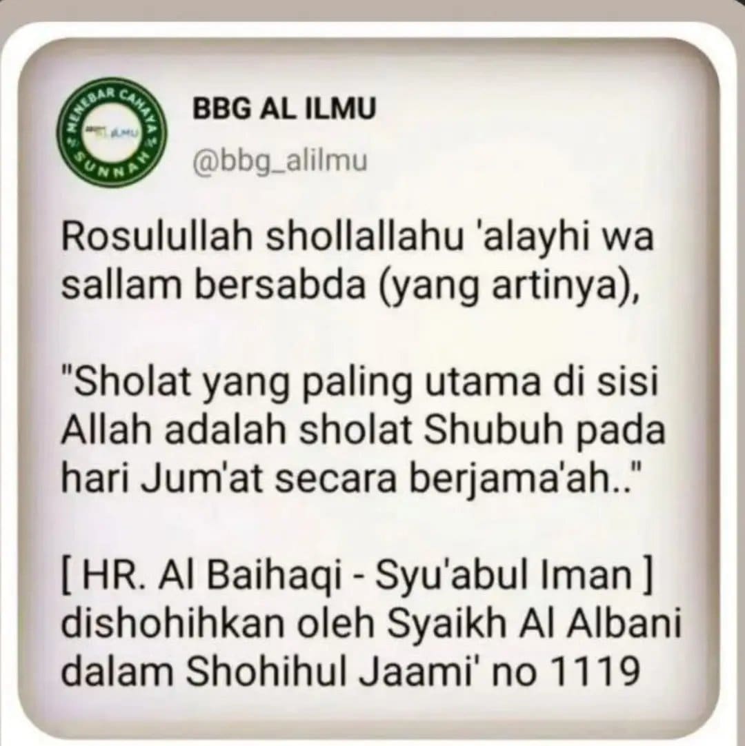 bagi kaum pria, sholat shubuh berjama’ah di masjid.
