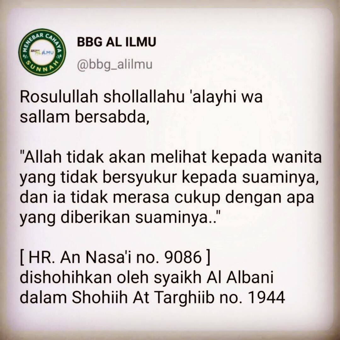salah satu bentuk syukur seorang istri kepada suaminya adalah dengan senantiasa mendo’akan kebaikan untuk sang suami, dan mengucapkan do’a kebaikan : ‘jazaakallahu khoyron’ (semoga Allah membalasmu dengan kebaikan) atas segala macam bentuk perhatian, nafkah, nasihat yang diberikan oleh suami kepada istri tercintanya.