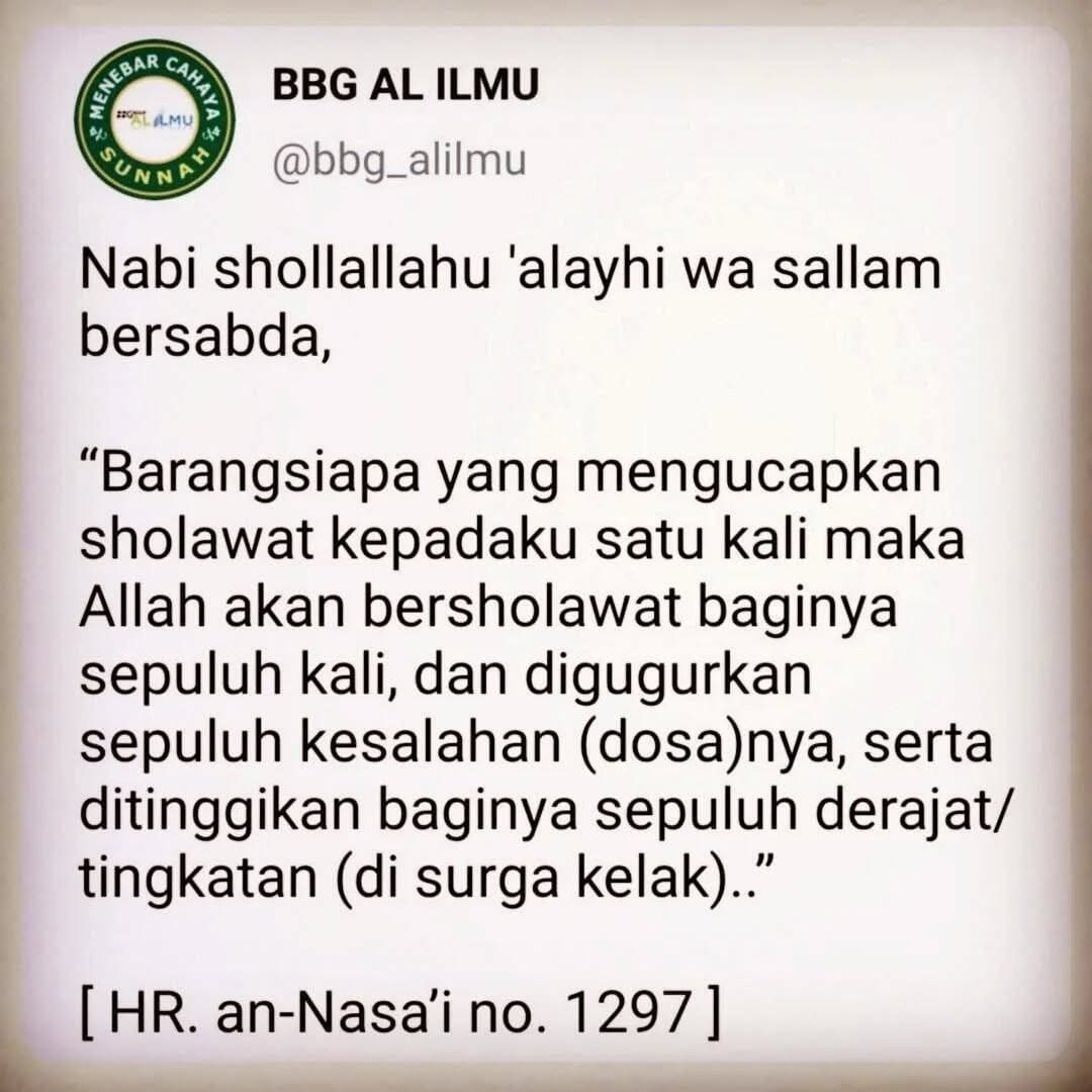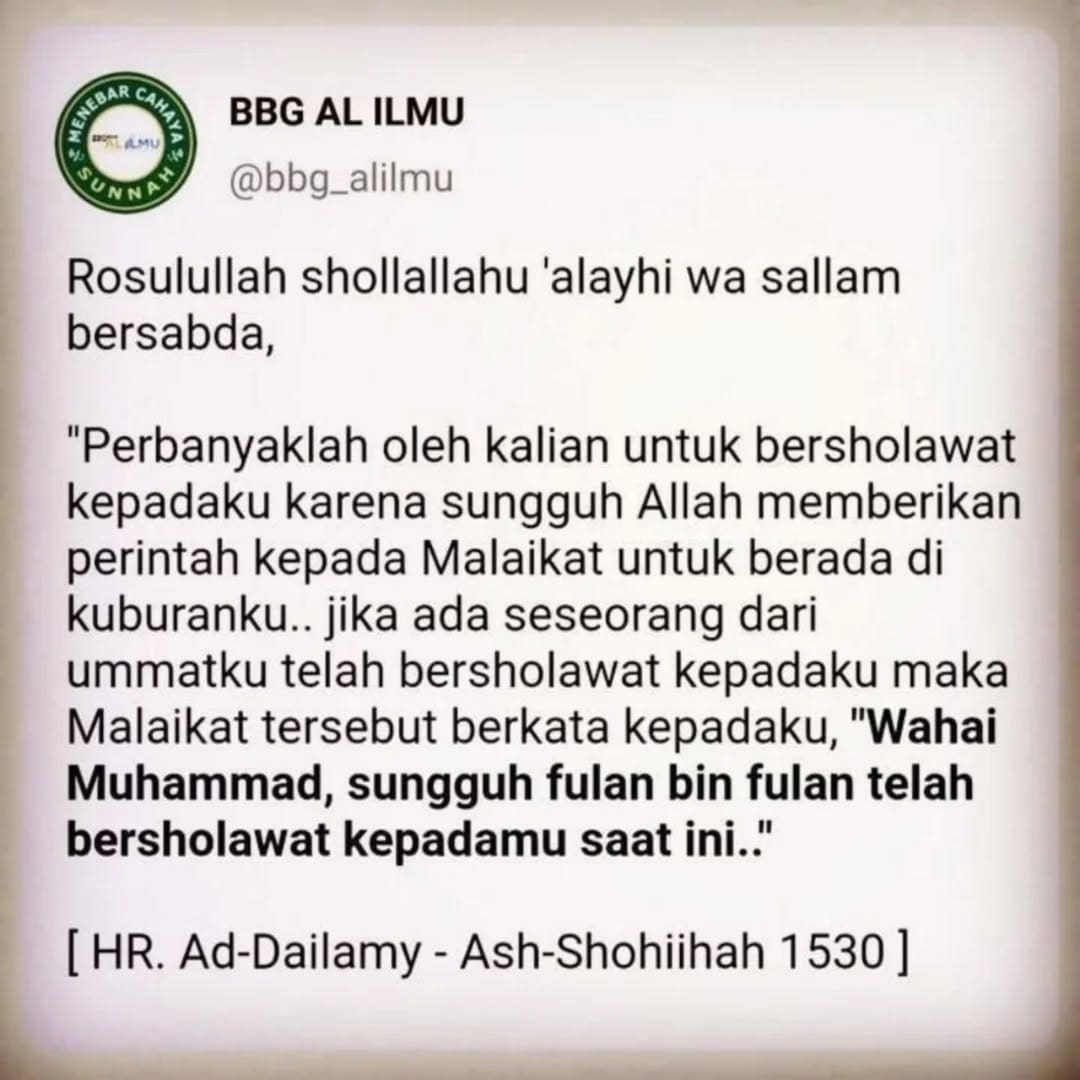 perbanyak sholawat dan salam di hari Jum’at karena setiap sholawat dan salam tsb akan disampaikan oleh para malaikat kepada Rosulullah shollallahu ‘alayhi wasallam .. Allaahumma sholli wa sallim ‘alaa Muhammad